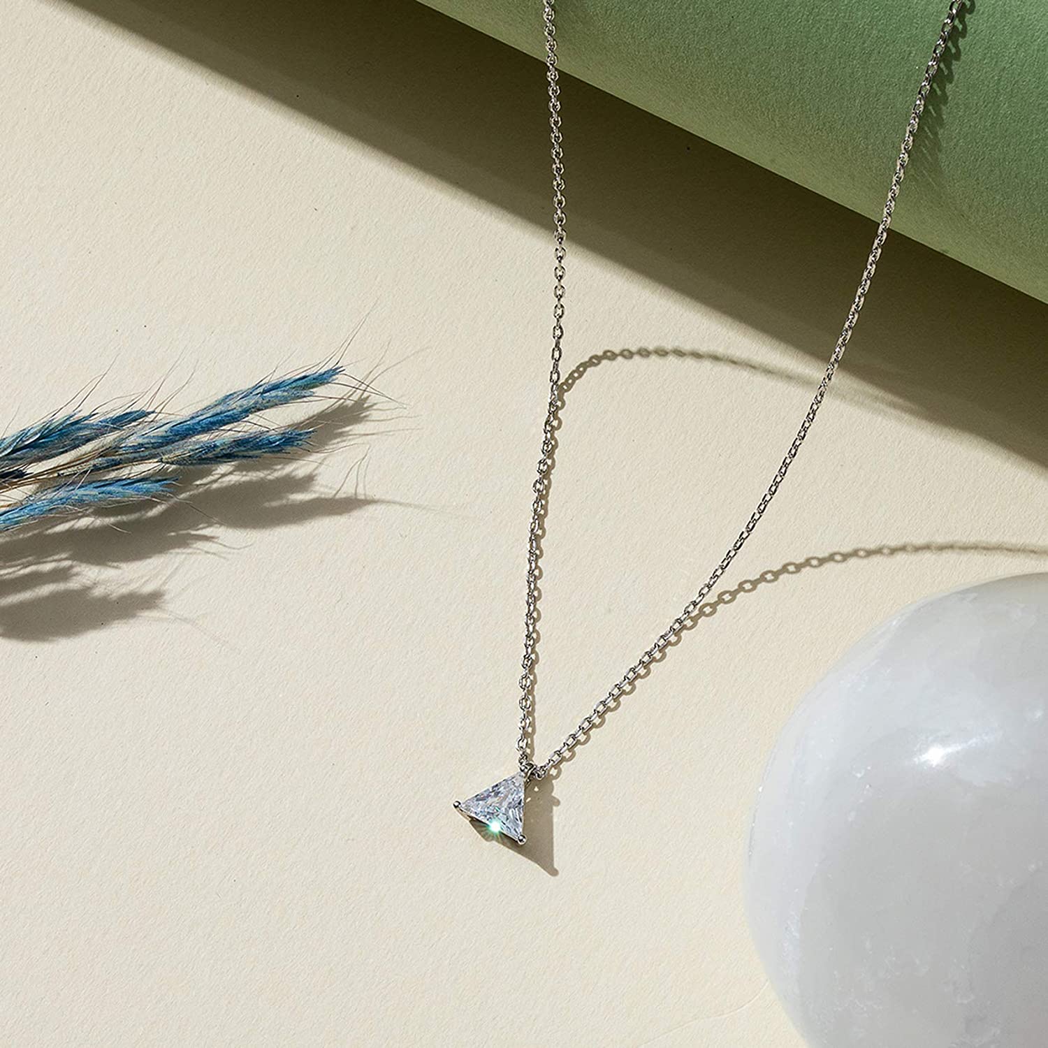 Decorati con la nostra collana con pendente placcato in oro 14K. Realizzato in argento sterling, il pendente assume un'accattivante forma triangolare con zirconi brillanti. Elegante e moderno, è un'aggiunta sofisticata alla tua collezione.
