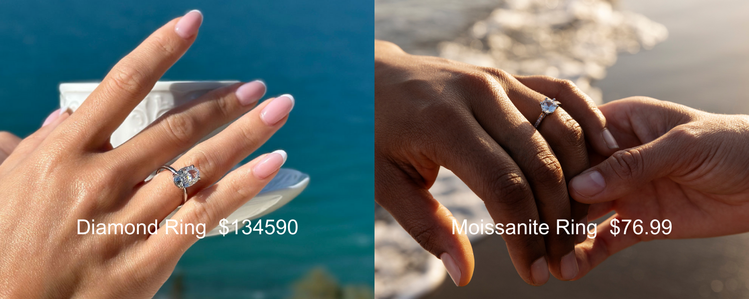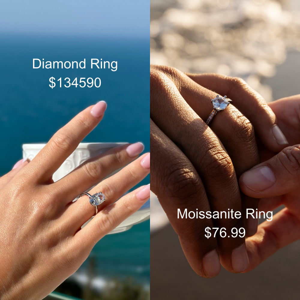 Features: 2.5*2.5mm moissanite stones, 3.1mm band