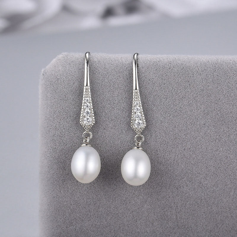 pearl drop earrings, earrings with pearl drops, silver pearl earrings, freshwater pearl earrings