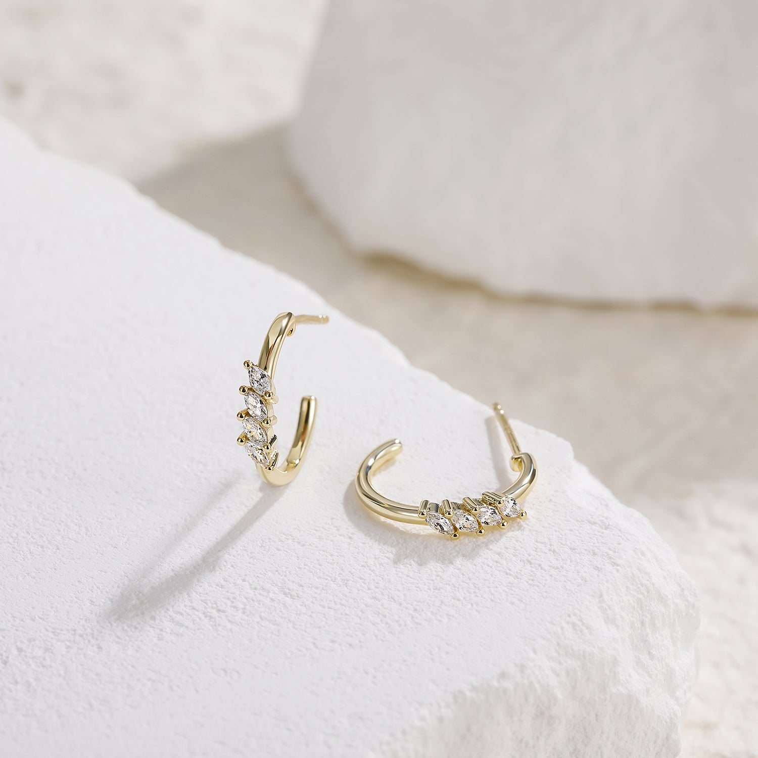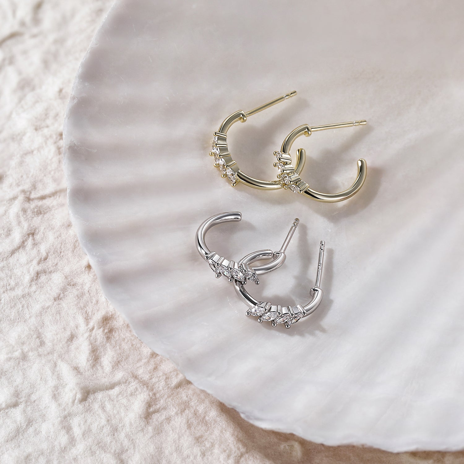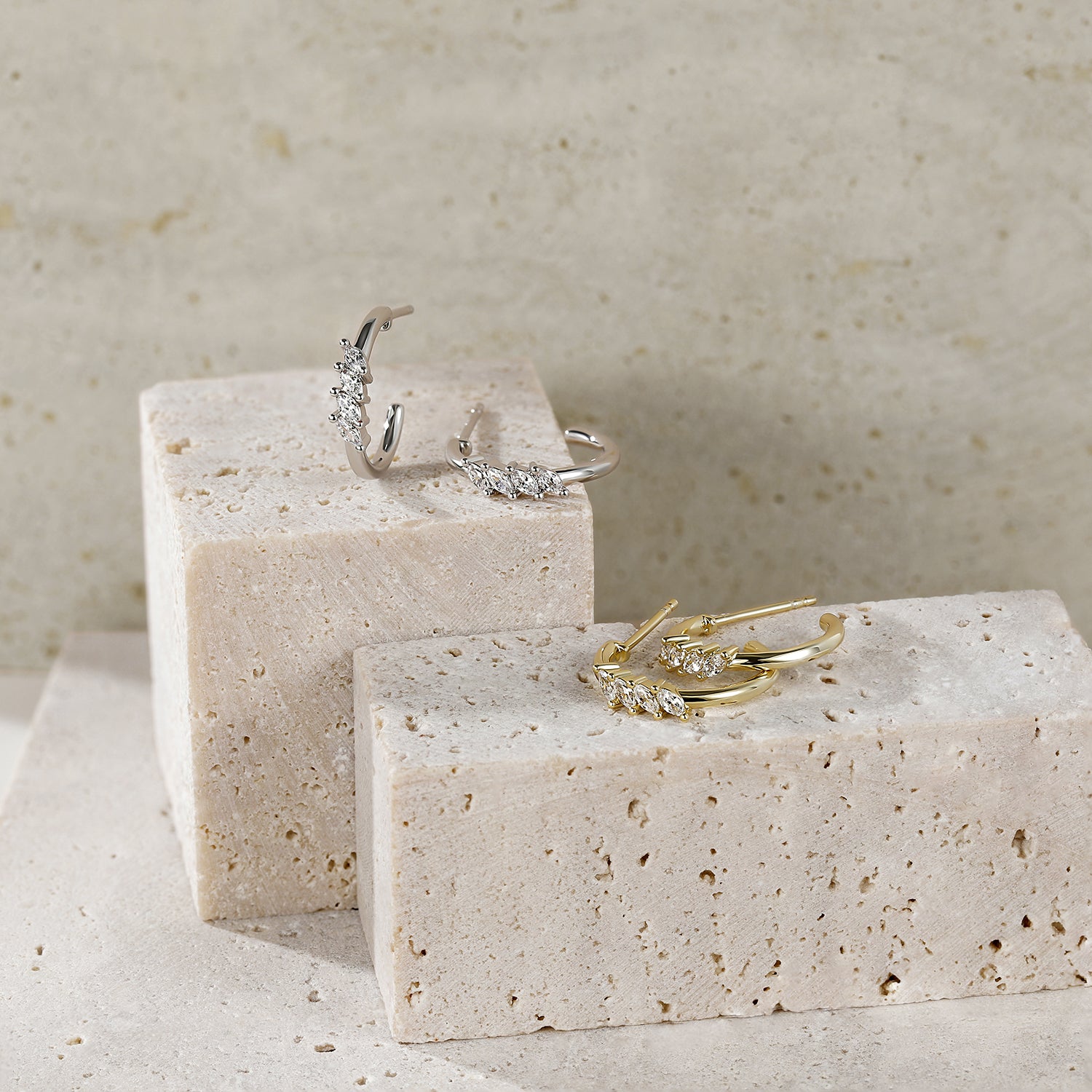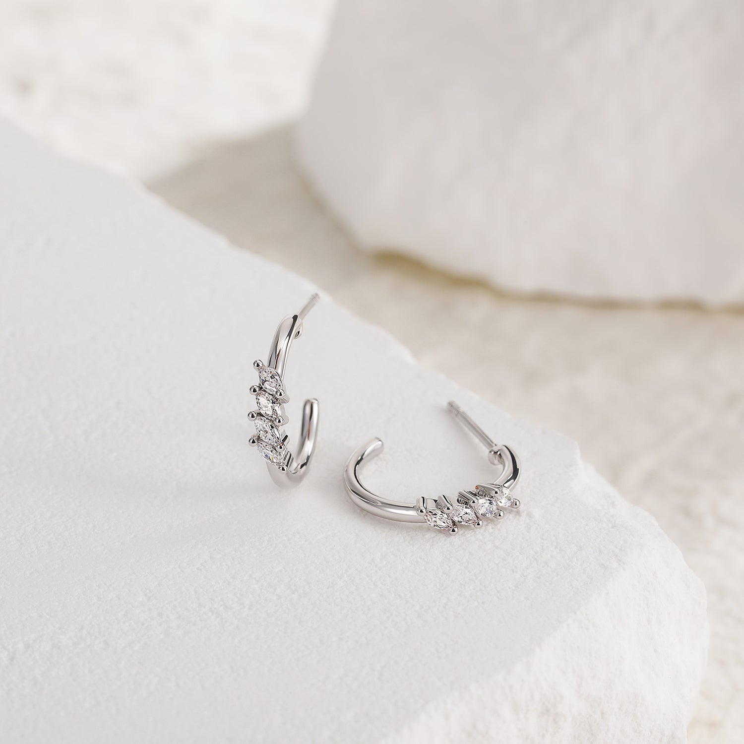Realizzati in argento sterling e decorati con pietre di moissanite di provenienza etica, questi orecchini trasudano un'eleganza senza tempo e uno scintillio senza pari. Versatili per ogni occasione, sono l'emblema del lusso e della raffinatezza duraturi.