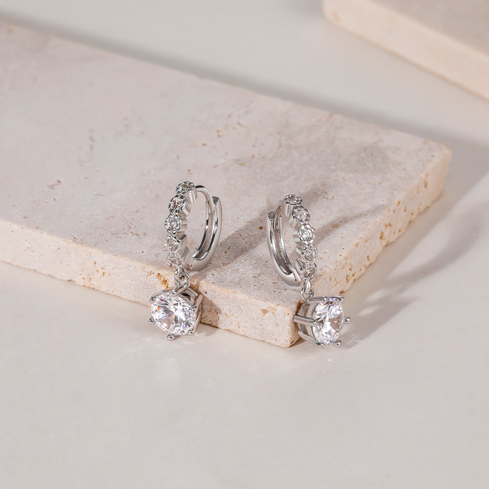 The S925 Cubic Zirconia Charm Huggies exude luxury with micro gems and round cut zirconia stones. These earrings shine like diamonds yet remain affordable.
