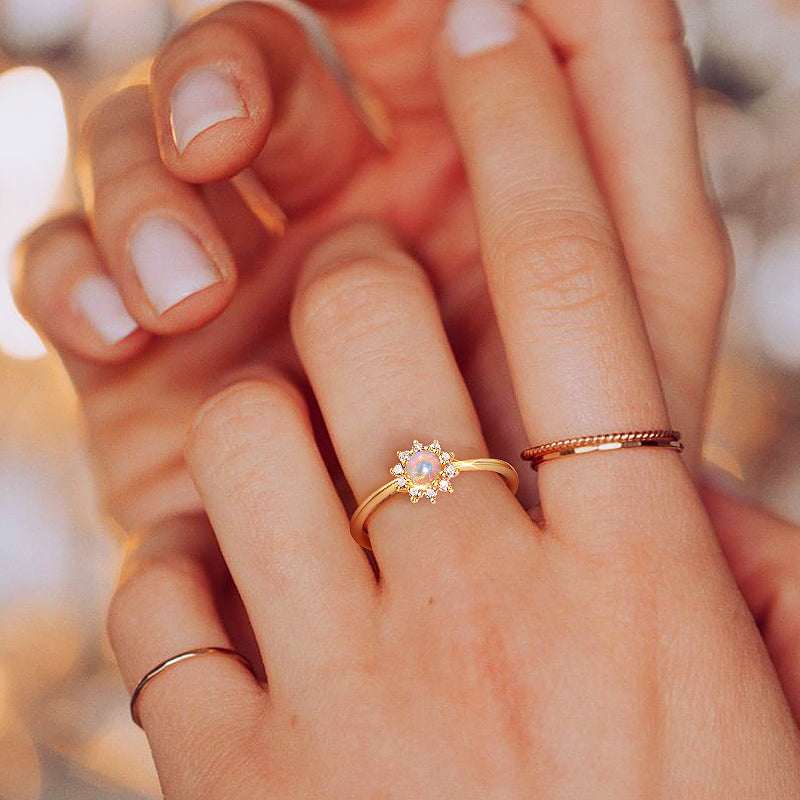 Sunflower rings, opal rings, fashion women's rings, cheap engagement rings under $60